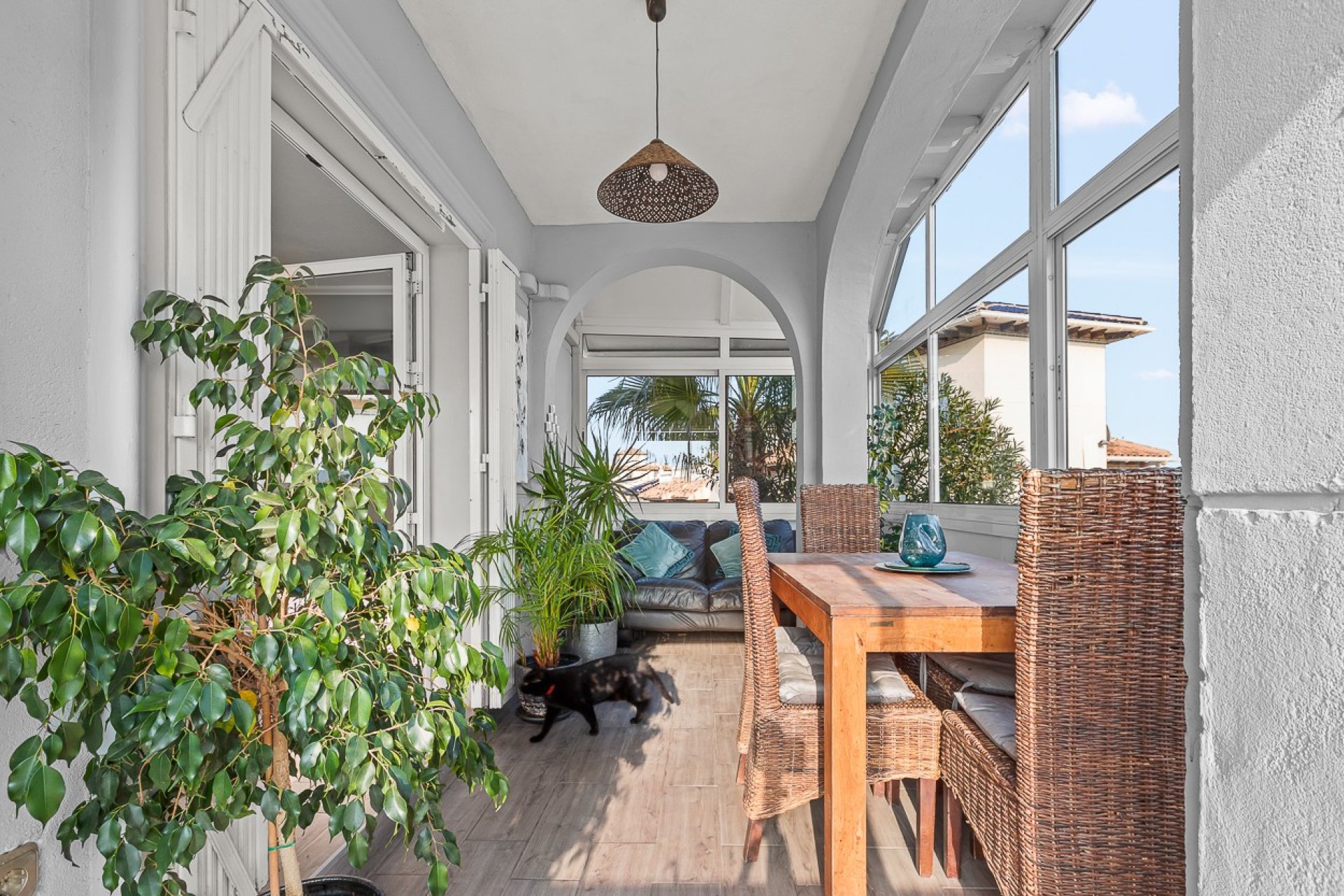 Ubicada en la prestigiosa Playa Flamenca, esta villa independiente orientada al sur ofrece la combinación perfecta de elegancia y versatilidad. La villa se encuentra en una amplia parcela que permite elegir entre diferentes zonas de estar. En el interior, la planta principal cuenta con un luminoso y espacioso salón con zona de comedor, un baño de invitados renovado con buen gusto y una cocina moderna completamente equipada e independiente. En la primera planta, se encuentran dos dormitorios y el baño familiar, junto con un salón de día que funciona como una agradable extensión del dormitorio principal. El rasgo más destacado de esta propiedad es su apartamento completamente independiente ubicado en la planta baja, con acceso tanto interno como externo. Este apartamento totalmente amueblado cuenta con dos dormitorios, un baño, su propia cocina completamente equipada y acceso directo a la calle, lo que lo convierte en el alojamiento perfecto para invitados o en una excelente oportunidad de alquiler privado. La villa dispone de aire acondicionado en todas las estancias, garantizando confort en cualquier estación del año, y la chimenea eléctrica crea un ambiente acogedor en las noches más frescas. En el exterior, la piscina privada invita al descanso, mientras que la terraza es ideal para disfrutar de las vistas del hermoso jardín y de un estilo de vida relajado al aire libre. El solárium ofrece vistas panorámicas al mar y al paisaje circundante. Ubicada a menos de cinco minutos a pie de La Zenia Boulevard y a 20 minutos de la playa, esta villa ofrece la combinación perfecta de lujo, comodidad y flexibilidad, convirtiéndola en una opción excepcional para quienes buscan un estilo de vida mediterráneo. No dude en ponerse en contacto con nosotros para programar su visita; estaremos encantados de recibirle y mostrarle todo lo que esta propiedad tiene para ofrecer.