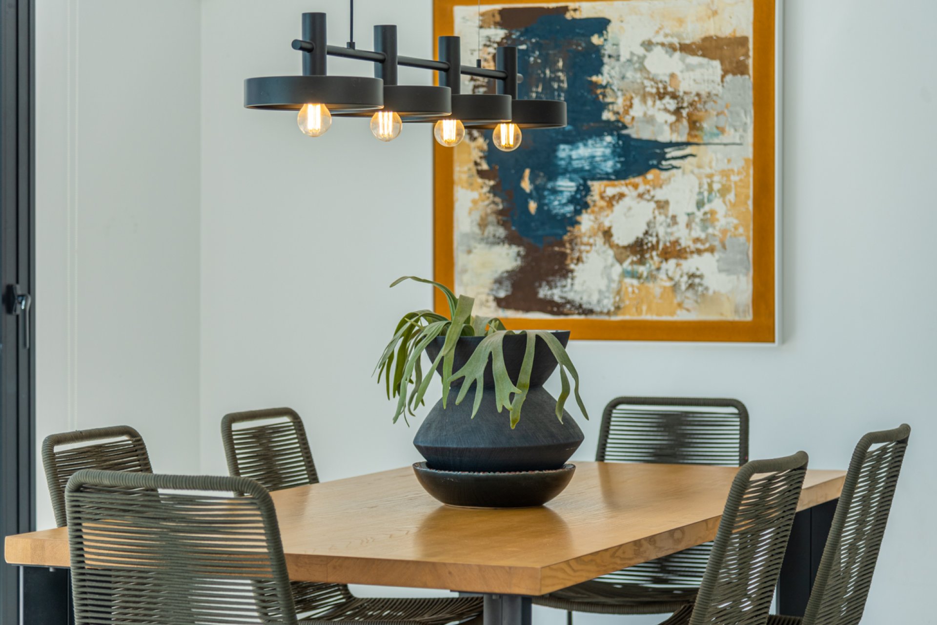 The villa is located in a quiet part of Ciudad Quesada, several kilometers from the coast. The area of the plot on which the property is located is 400 m2, and the living area of the villa itself is 185 m2 and consists of two floors - the ground floor and the first floor. On the ground floor there is a spacious living room, dining room with kitchen, laundry room, 2 bathrooms and a bedroom. Both the living room, kitchen and dining room have a view of the garden and the pool, which makes this part of the house wonderfully lit and the interior is very bright. Access to the first floor is via stairs and there are 2 bathrooms, 3 bedrooms and 2 large terraces which can be accessed from two independent bedrooms. The house is fully equipped, with very good quality furniture, household appliances and bathroom fixtures, and the entire property is also air-conditioned. The villa has been decorated in a modern style, and thanks to many glazing and accessories, its interior is spacious and cozy at the same time.